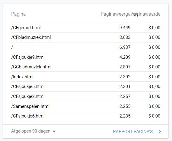 * Op dit plaatje kan je zien wat de populairste pagina's zijn op mijn website. Met die kanttekening dat dat geld voor de afgelopen 3 maanden (90 dagen) Het moge duidelijk zijn dat de bladmuziek het populairst is en daarin word zoals je hierboven al hebt kunnen zien ook het meeste tijd in gestoken.