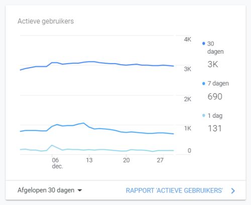 * Op dit plaatje van Google analytics is goed te zien hoe de frequentie van het aantal bezoekers per dag fluctueert. Vandaag 30 december is het aantal van gisteren gemeten en dat zijn 131 unieke (lees verschillende) bezoekers.