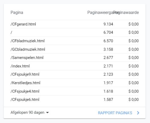 * Op dit plaatje kan je zien wat de populairste pagina's zijn op mijn website. Met die kanttekening dat dat geld voor de afgelopen 3 maanden (90 dagen) Het moge duidelijk zijn dat de bladmuziek het populairst is en daarin word zoals je hierboven al hebt kunnen zien ook het meeste tijd in gestoken.