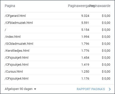* Op dit plaatje kan je zien wat de populairste pagina's zijn op mijn website. Met die kanttekening dat dat geld voor de afgelopen 3 maanden (90 dagen) Het moge duidelijk zijn dat de bladmuziek het populairst is en daarin word zoals je hierboven al hebt kunnen zien ook het meeste tijd in gestoken.