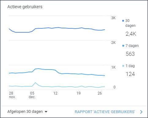 * Op dit plaatje van Google analytics is goed te zien hoe de frequentie van het aantal bezoekers per dag fluctueert. Vandaag 30 december is het aantal van gisteren gemeten en dat zijn 124 unieke (lees verschillende) bezoekers.