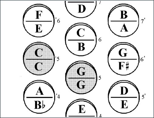 Steier spelen volgens het trekharmonicanotatiesysteem.